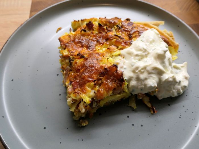 Dazu passt eine Joghurt Schmand Creme. Alles schnell gemacht 4 EL Naturjoghurt 10% und 4 EL Schmand 24%. Salz, Pfeffer, ein wenig Olivenöl, 1-2 EL Schnittlauch in feine Röllchen sowie ein wenig Zitronenabrieb. Alles gut vermengen.