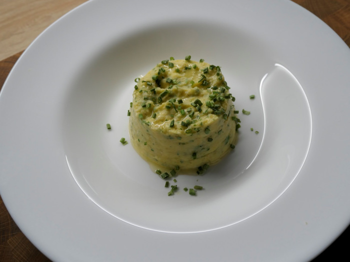 Wer mag nimmt zum Garnieren noch eine wenig Petersilie oder Schnittlauchröllchen und ein paar Spritzer Olivenöl.